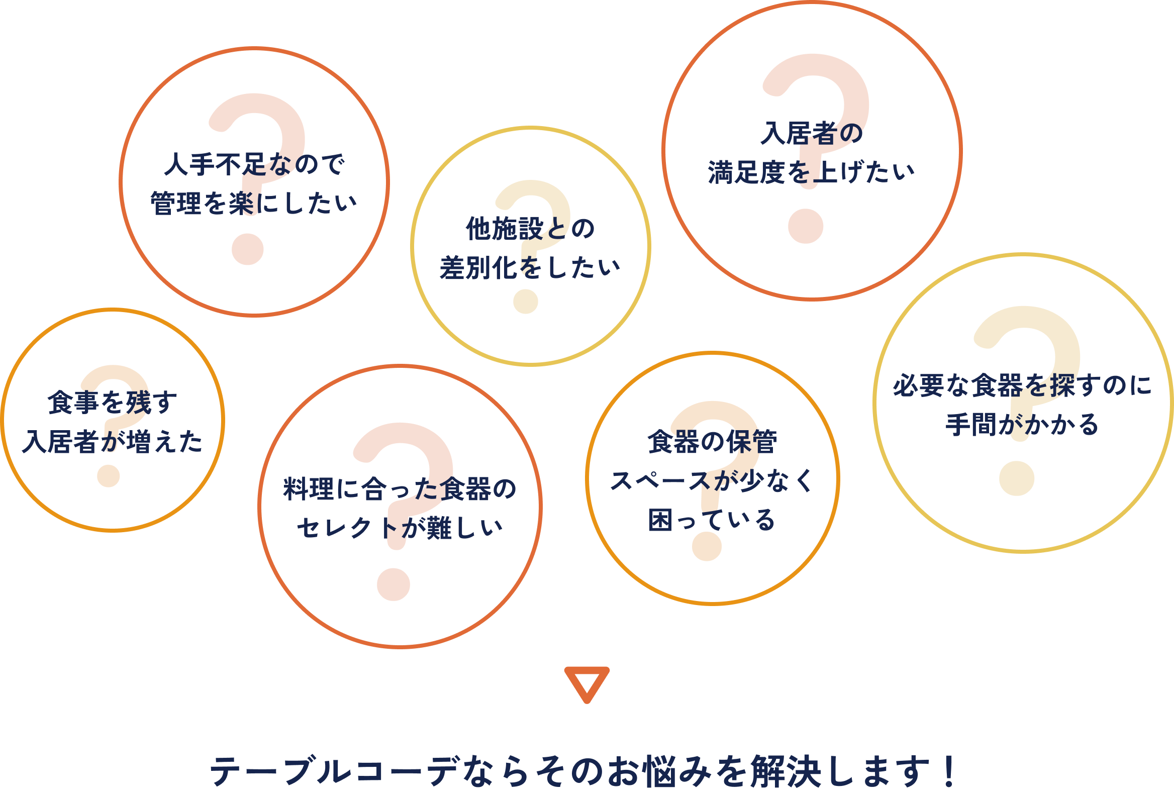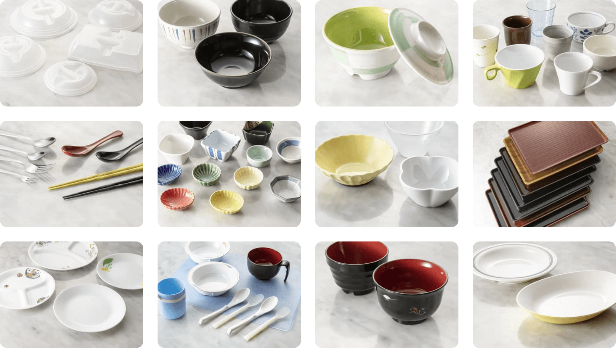 入居者にとって、施設での生活は「日常」。日頃の食事量やトレイに適したサイズをオリジナル開発。さまざまな料理の組み合わせなどを考慮し、それでいて風合いのある食器デザインにしました。毎日の食事をもっと華やかに、美味しく感じてもらえるため、入居者の満足度向上に役立ちます。