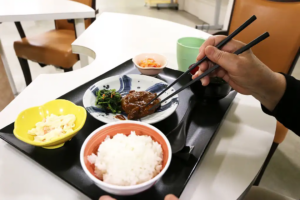 食器の柄や質がより高級に見せてくれます。当施設では入居者の方により満足してもらいたいという思いから、地元の高級米を使った料理を提供したり、完調品のメーカーも多数の中からすべて試食して選んだりと、かなり食事にはこだわっています。